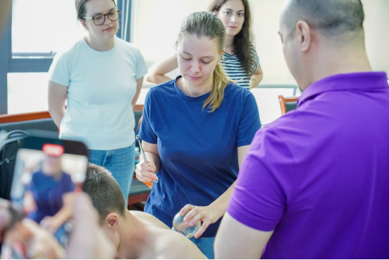 外籍师生体验拔罐
