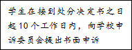 个人权利告知事项:处分决定与本人见面,如有异议,可在接到处分通知起10日内向学校学生申诉处理委员会提出书面申诉。学生申诉处理委员会在接到书面申诉15日内进行复查,做出复查结论并告知申诉人。如对复查决定仍有异议,可在接到复查决定起15日内向省级教育行政部门提出书面申诉。在申诉期间,处分决定有效。