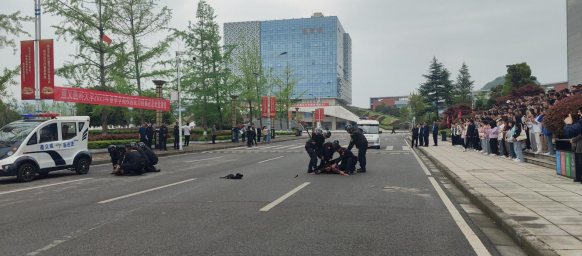 为进一步提升校园师生应急防范处置能力,4月14日,YABO鸭脖在西门开展了“2023年春季学期校园反恐防暴应急处置演练”。此次活动由新蒲公安分局反恐大队、特巡警大队现场指导;学校党委副书记、校长刘建国,校党委委员、副校长赵继锋出席,党委学校办公室、保卫处等部门负责人参加,200余名学生代表现场观看。