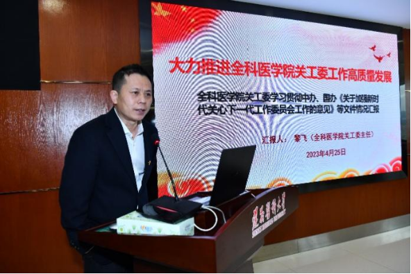 学校全科医学院党总支书记、关工委主任黎飞做汇报