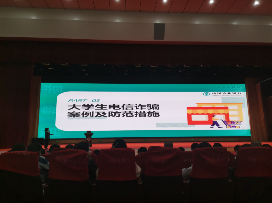 讲座现场,梁林玲用通俗易懂的语言讲解了金融知识普及、如何维护个人金融信息安全、大学生电信诈骗典型案例及防范措施,教育引导同学们养成良好的金融习惯,注意保护个人金融信息,提高风险防范意识和能力,自觉远离非法金融活动。提醒同学们防范电信网络诈骗,警惕十个“凡是”、牢记九个“一律”。