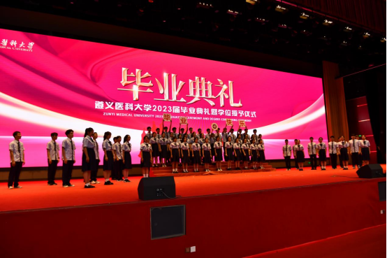 学校党委副书记、校长刘建国代表学校向2023届全体毕业生致以最热烈的祝贺。青春是什么?刘建国从三个方面娓娓道来。青春是短暂的,但却是永远的记忆。他从学校传承红色基因、赓续红色血脉的历史讲起,述说到取得成功更名大学、获批博士学位授予单位等突破性发展的“黄金十年”,他告诉同学们,陪伴母校度过的岁月让你们的青春熠熠生辉,将成为大家弥足珍贵的永恒记忆。青春是匆忙的,但却有持久的感动。多少次为了考试而忐忑不安,多少次因为论文辗转反侧……他说道。如今回看,这些“痛苦时刻”都是为了青春而奋斗的“梦醒时分”。当你们离开母校的时候就可以坚定的说:“无论到哪里,我们永远都是遵医人,因为我们身上传承着遵医魂。”青春是平实的,但却有不屈的坚韧。自习室里的安静阅读,实验室里的反复操作;东湖边的小道上的专心思考,这就是青春真实的一面,所有慎独慎微的背后映射出的是同学们为了学知识、练本领的那份坚韧,在未来人生路上,他绝不会“泯然众人矣”。最后,他勉励同学们,要做胸怀“国之大者”的有志之士。传承和弘扬遵医前辈“红医魂”,为国为民、仁爱济世,要有为党、为国、为民积极奉献的大志向和大气魄。要做心有“德之大者”的有爱之士。从医从教、从研从管,都希望始终以德为先,用“德之大者”来加固人生的底座。要做身有“才之大者”的有识之士。勇于挑最重的“担子”、接最烫的“山芋”、啃最硬的“骨头”,让自己成为可堪大用、能担重任的栋梁之才。