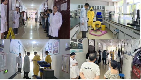 为贯彻落实《贵州省教育厅办公室关于开展全省教育系统2023年“安全生产月”活动的通知》的文件精神,按照学校2023年“实验室安全生产月”活动方案安排,6月28日,学校分别在YABO鸭脖官网国家级药学实验教学示范中心、科研楼四楼贵州省高等学校传染病与生物安全重点实验室开展实验室化学突发事件及生物突发事件应急演练活动。学校党委委员、副校长龚其海,设备处,药学院、基础医学院、科技处、保卫处、校医院参加,各院系、各实验室实验人员和师生现场观摩。