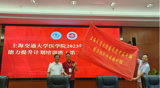 开班仪式后,刘建国向上海交通大学医学院授班旗并进行合影。本次培训为期四天,由理论授课、现场教学、参观交流等部分构成。(审核:一审袁怡、刘伟,二审杨清玉、三审李均,撰稿、摄影:龚喜)