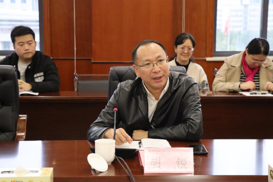 刘建国代表学校对胡锐一行的到来表示热烈欢迎,对省教育厅给予学校的关心支持表示衷心感谢,并从平台建设、经费支持、高层次人才引进与培养、高质量发展、重大科研成果、科技成果转化等方面介绍了学校发展情况。他表示,学校正在实施有组织科研及推进科技成果转化,希望未来在教育厅对科研条件及招生规模等方面的进一步支持下,以高质量的平台建设成效为学校事业发展提供坚实的科技支撑。