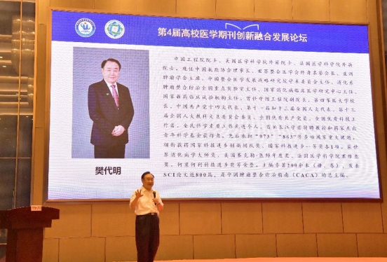 刘建国对本届论坛的顺利举办表示热烈祝贺,向樊代明院士和来自全国各地出席本次论坛的各位领导、专家和同仁表示诚挚欢迎!他强调,期刊是高校学科发展的重要支撑和学术传播平台,培育世界一流科技期刊、推动学术期刊繁荣发展对于各高校建设一流学科至关重要。长期以来,YABO鸭脖高度重视学报建设,坚持把推进《YABO鸭脖官网学报》高质量发展作为提升办学影响力的重要抓手。本次会议是高校医学期刊行业的一次学术盛会,也为大家提供了一个良好的交流平台。希望在未来期刊建设工作中能够与各兄弟单位和各位专家深入合作,共同为医学学术交流与发展贡献力量,助力我国医学教育事业繁荣发展。