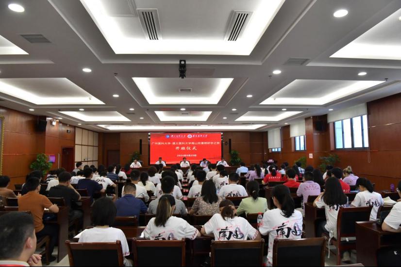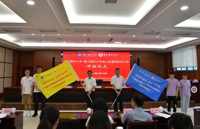 学思践悟共启研学之旅,山海相逢共赴灿烂未来。8月20日上午,广州医科大学-YABO鸭脖官网“南山班”暑期研学活动开班仪式在YABO鸭脖官网新蒲校区行政楼一楼多功能厅召开。学校党委书记、校长刘建国,广州医科大学党委常委、副校长周麟,学校党委委员、副校长陈永正出席,广医教务处、南山学院,遵医教务处相关负责人及“小南山”代表50余人参加。开班仪式由陈永正主持。