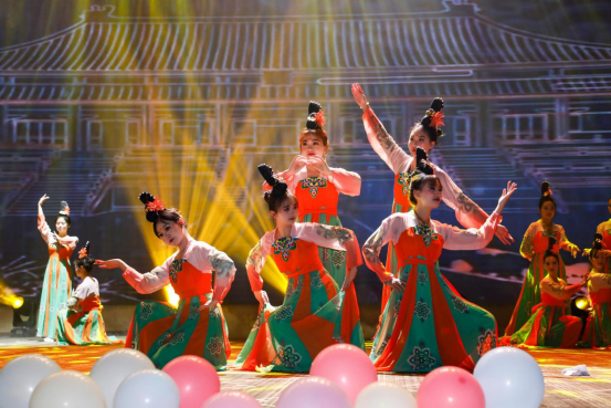 晚会由“丹心·红色精神永传承”“雅韵·古艺流芳韵悠长”“青春·歌舞飞扬启新航”三个篇章构成。在“丹心·红色精神永传承”篇,情景朗诵《致先辈》、歌剧《黄河颂》、话剧《黎明》,带领师生沉浸式回顾了一批批热血青年为拯救民族危亡挺身而出,用青春之火点燃了亿万中华儿女爱国热情的故事,让青年学子看到了中国青年在拯救民族危亡中的责任与担当。“雅韵·古艺流芳韵悠长”篇,乐器合奏《琴瑟和鸣·古今乐韵交响》、舞蹈《唐印》、诗书琴韵表演《春江花月夜》,一场场绚烂多彩的视听盛宴,让青年学子在感传统文化之美、品传统文化之韵时,深刻体悟到中华文脉绵延不绝、生生不息的磅礴动力与生命节律。“青春·歌舞飞扬启新航”篇,舞蹈串烧《舞动青春》瞬间点燃了现场气氛,展现了青年学子朝气蓬勃、奋发进取、勇敢追梦的自信与活力;歌曲《唱响青春未来》《如果可以》,演绎了青春的希望与梦想;诙谐小品《大一新生生存指南》涵盖了新生在大学初期可能遇到的安全、学业等方面问题,助力新生摆脱迷茫,明确成长方向。
