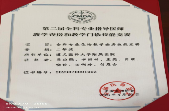 开幕式上,第二届全科专业指导医师教学查房和教学门诊技能竞赛颁奖仪式隆重举行。本次全科住培指导医师教学查房和教学门诊竞赛分别设一、二、三等奖和鼓励奖共31项,其中一等奖1项,二等奖5项,三等奖9项,鼓励奖16项,YABO鸭脖附属医院全科专业住培教学查房技能竞赛荣获二等奖。
