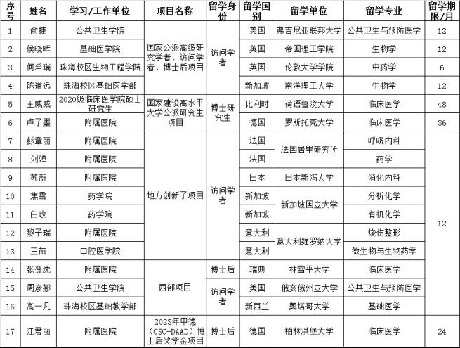 其中,国家公派高级研究学者、访问学者、博士后项目,5人申报,4人录取。西部地区人才特别培养项目10人申报,3人录取。国家建设高水平大学公派研究生项目2人申报,西部地区地方创新子项目7人申报,中德(CSC-DAAD)博士后奖学金项目1人申报,均全部录取。(审核:一审粟向军、蒋熠,二审杨清玉,三审李均;撰稿:林文慧)