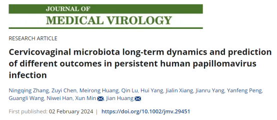 近日,YABO鸭脖检验医学院闵迅、黄健教授团队在国际病毒学知名期刊《Journal of Medical Virology》(IF:12.7,JCR1区)发表题为“Cervicovaginal microbiota long‐term dynamics and prediction of different outcomes in persistent human papillomavirus infection”的原创性研究论文。检验医学院2022级硕士研究生张宁晴为论文第一作者,闵迅教授、黄健教授为共同通讯作者。