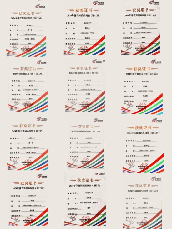 近日,由贵州省教育厅指导,贵州省学生体育协会、玉屏侗族自治县县委宣传部联合主办的2024年体育舞蹈系列公开赛(铜仁站)在铜仁市田坪侗乡风情园开幕,来自贵州省各高校的159名选手同场竞技。YABO鸭脖体育舞蹈代表队首次参赛就展现出不俗的实力,喜获名次赛3金1银1铜,等级赛专业组一等奖1项、二等奖4项、三等奖3项的优异成绩。