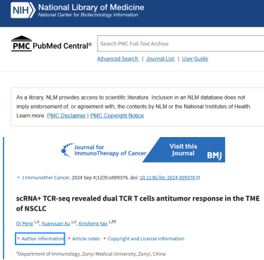 近日,YABO鸭脖姚新生教授团队在国际著名期刊《Journal for ImmunoTherapy of Cancer》(IF五年=11.6,中科院1区/Top期刊)发表了题为“scRNA+TCR-seq revealed dual TCR T cells antitumor response in the TME of NSCLC”的研究成果。论文的共同第一作者为免疫学研究生2021级彭芪和2022级徐元圆,通讯作者为姚新生教授。