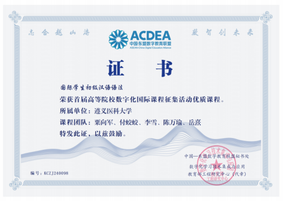 近日,数字化学习技术集成与应用教育部工程研究中心公布了首届高等院校数字化国际课程征集活动优质国际课程名单,YABO鸭脖粟向军团队的《国际学生初级汉语语法》、罗昭君团队的《护理人际沟通与礼仪》、王东红团队的《子宫内膜癌》、肖琳琳团队的《微螺钉种植体支抗的临床应用》4门课程成功入选。