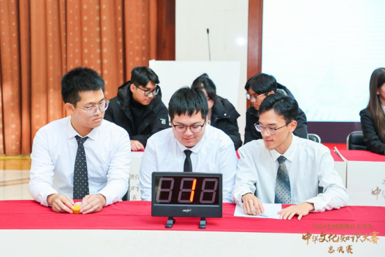 全国总结赛包括必答题和抢答题两个部分,分为“先声夺人”“抢滩登陆”“险中求胜”三个环节,题目涵盖了中华传统文化的多个领域,从历史知识、文学艺术和传统习俗等多方面考察参赛学生的中华文化素养和知识底蕴。经过半决赛和总决赛的激烈角逐,“遵医仁心队”在与浙江大学、南开大学、厦门大学、中南大学等优秀参赛队伍同台竞技中表现突出,以丰富的知识储备和扎实的传统文化基础,最终斩获总决赛第一名的好成绩,教育部港澳台办公室一级调研员刘海峰为YABO鸭脖代表队颁奖。