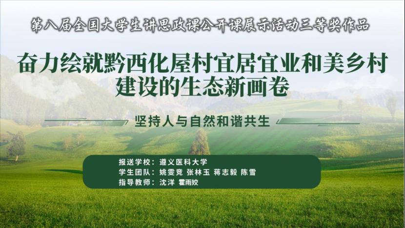 近日,教育部公布“七十五载薪火传承,千秋伟业奋斗有我——第八届全国高校大学生讲思政课公开课展示活动”评审结果,学校党委宣传部报送的作品《奋力绘就黔西化屋村宜居宜业和美乡村建设的生态新画卷》荣获国赛三等奖,实现YABO鸭脖在该项比赛国家级奖项上的新突破。该作品由马克思主义学院副院长沈洋和贵州省团校讲师霍雨姣联合指导,骏马宣讲队走进化屋村以生动的思政课描摹多彩贵州生态新画卷。