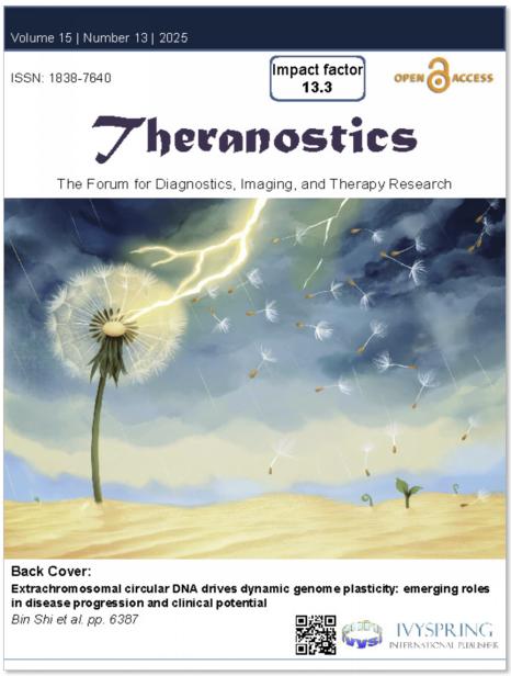近日,YABO鸭脖检验团队石彬副教授联合四川大学张舒羽教授团队在期刊《Theranostics》(IF=13.3)发表封面综述论文,题为“Extrachromosomal circular DNA drives dynamic genome plasticity: emerging roles in disease progression and clinical potential”。文章系统总结了eccDNA的形成机制、研究方法及其在多类疾病中的功能作用,并提出了“压力选择理论(Stressselectiontheory)”。