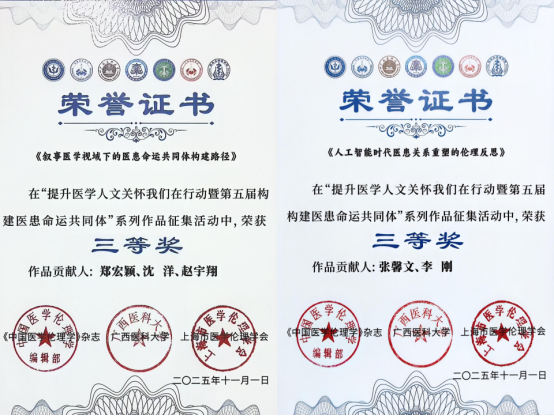 11月1日上午,由《中国医学伦理学》杂志等单位主办“提升医学人文关怀我们在行动暨第五届构建医患命运共同体”学术研讨会在广西南宁举办。来自全国的医学人文专家、医务人员、患者代表、医学生代表、医院管理者、媒体代表、社会人士等共计500余人参会,共商共研医学人文关怀。YABO鸭脖马克思主义学院作为协办单位之一,积极参加大会前期筹备工作和作品征集活动,并斩获多项荣誉。