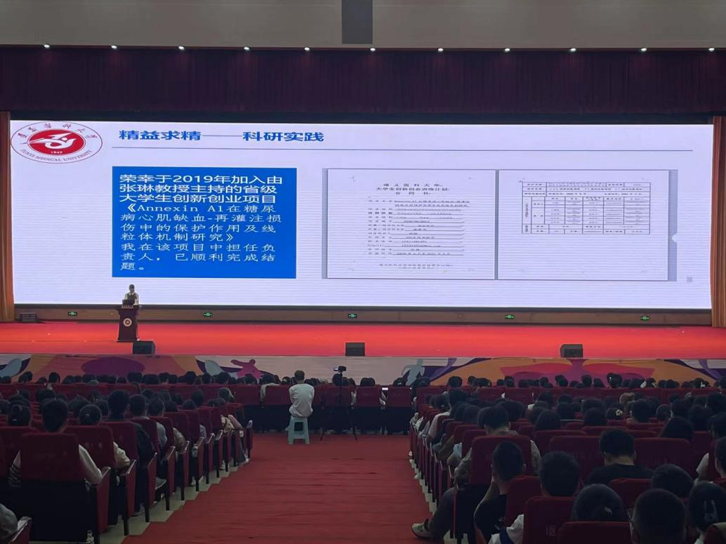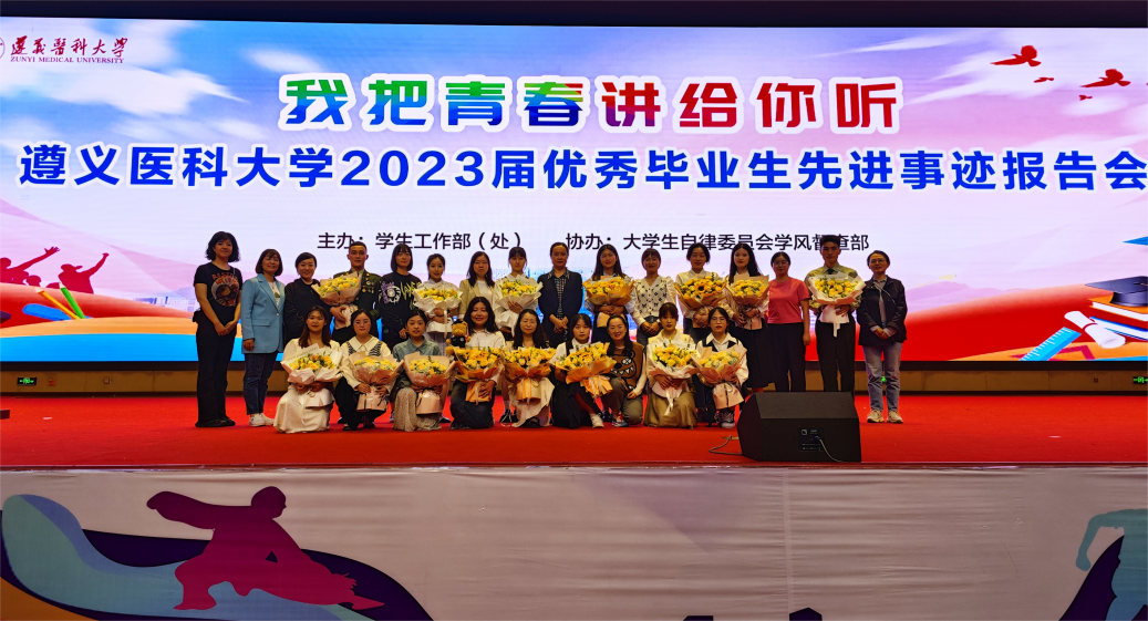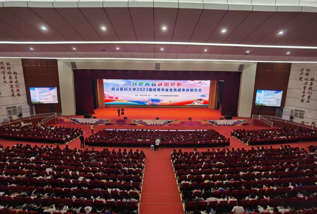 杨艳部(处)长在致辞中指出,2023届毕业生将奋斗作为他们大学生活的底色,将追梦的足迹留在遵医校园。15位宣讲团成员作为优秀毕业生代表,是遵医追梦人的代表,通过分享他们的青春成长故事,将追梦的力量传递给更年轻的遵医学子。希望广大在校生以优秀毕业生为榜样,把个人的理想追求融入国家和民族的事业中,心中有阳光,脚下有力量,继承遵医传统,谱写人生华章。