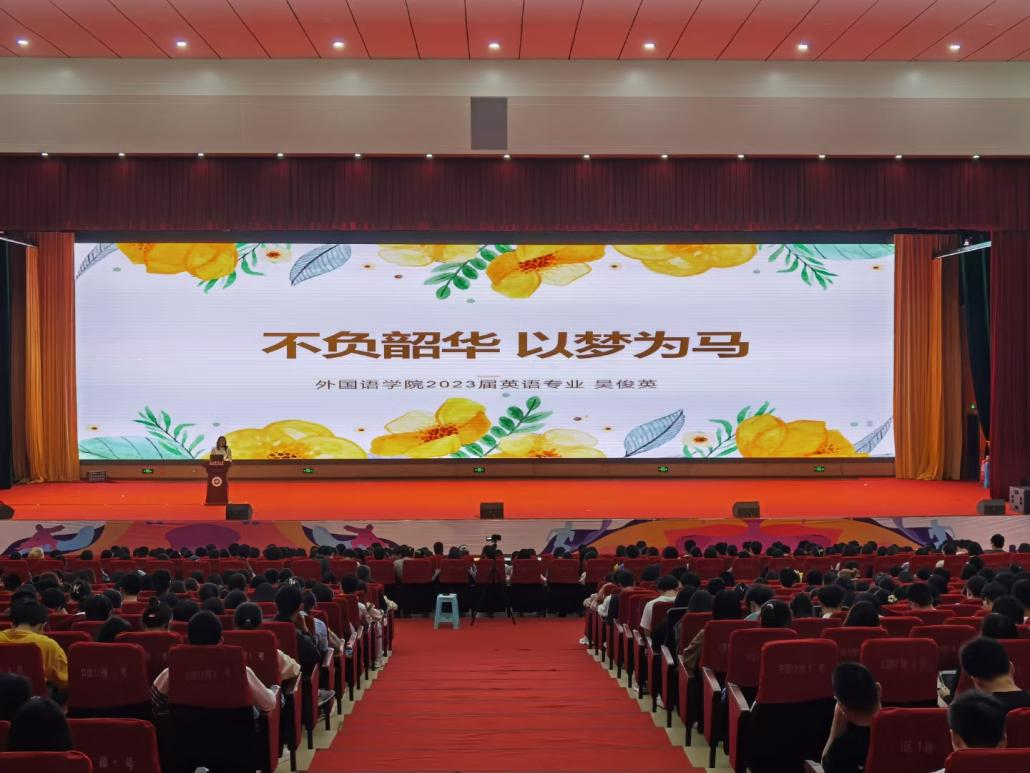 为深入学习贯彻党的二十大精神,落实习近平总书记关于青年工作的重要论述精神,充分发挥YABO鸭脖优秀大学生的典型示范与朋辈引领作用,充分展示毕业生积极进取的精神风貌,促进优良学风、校风建设,5月24日晚,由学校学生工作部(处)主办,大学生自律委员会学风督查部协办的“我把青春讲给你听”——YABO鸭脖官网2023届优秀毕业生先进事迹报告会在学校会堂圆满完成。学校学生工作部部长、学生工作处处长杨艳为报告会致辞,各学院分管学生工作书记(副书记)及辅导员出席报告会,来自各学院的2000余名在校生代表参加了本次报告会。