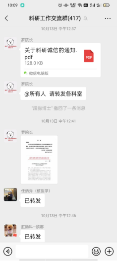 四是坚持宣传引导先行,营造良好科研诚信氛围 全方位加强科研诚信宣传。充分利用科研工作交流群、医院OA网等平台,定期加强科研诚信宣传教育。同时,对相关主管部门要通报的违反科研诚信反面案例加大曝光力度,发挥警示教育作用,加强典型宣传,大力宣传科研初心、德学双馨的专家学者,广泛开展以科学精神、科学道德、科研伦理、学术规范为内容的宣讲教育。