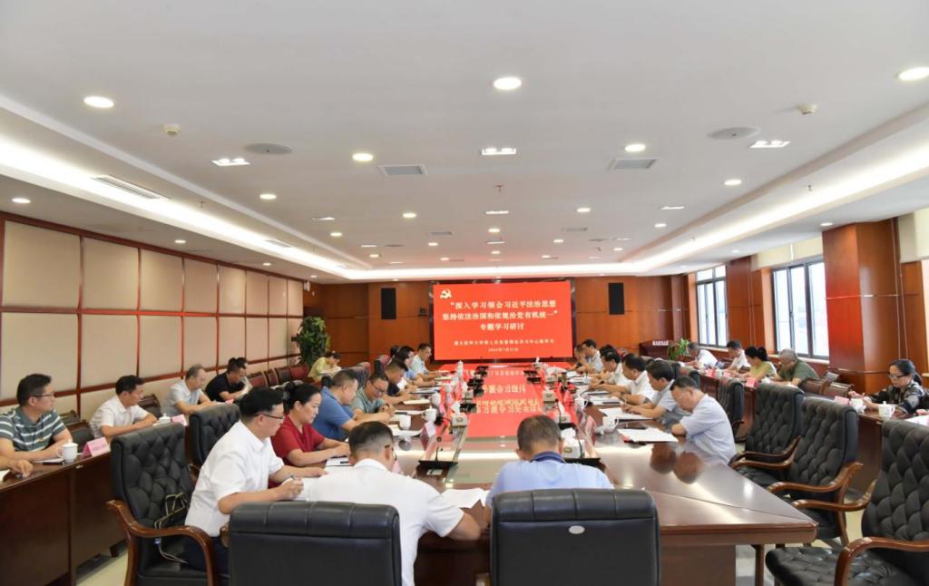 近日,学校党委理论学习中心组在行政楼五楼2号会议室召开扩大学习会议。会议围绕“深入学习领会习近平法治思想,坚持依法治国和依规治党有机统一”主题开展专题学习研讨。